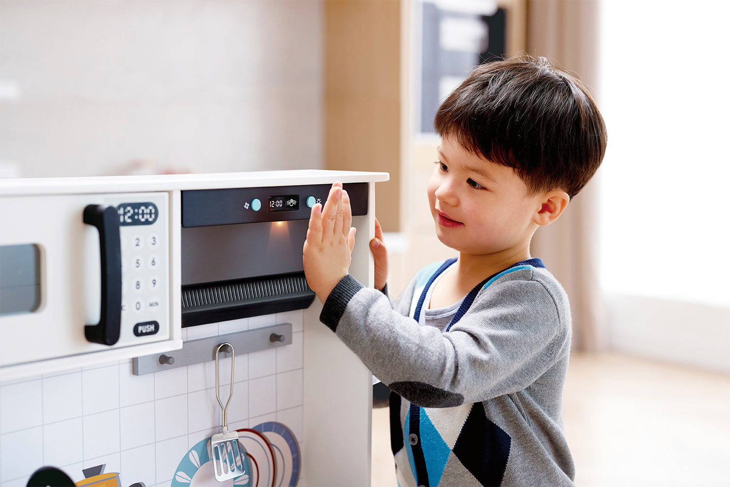 - Interactive Features: The exhaust hood can be turned on and off with a wave of the hand, while the stove incorporates exciting sound and light effects, providing a stimulating and realistic cooking experience during play.
